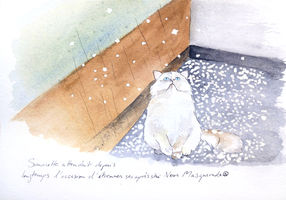 Dessins de chats à la plume et à l'aquarelle